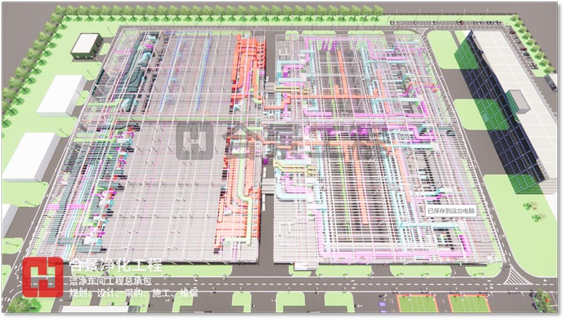 BIM 技術(shù)可應(yīng)用于工程項(xiàng)目規(guī)劃、設(shè)計(jì)、施工、改建、運(yùn)維等范圍,為產(chǎn)業(yè)鏈貫通、工業(yè)化建造和建筑創(chuàng)作提供技術(shù)保障。合景智慧建設(shè)(廣東)有限公司在潔凈廠房工程建設(shè)中,以BIM技術(shù)為全周期模擬,對(duì)工程全局,即潔凈環(huán)境、人流物流、暖通、電氣工程、整廠能耗、質(zhì)量、安全等方面提供方案優(yōu)化和科學(xué)決策提供依據(jù),與各專(zhuān)業(yè)協(xié)同工作、項(xiàng)目的虛擬建造和精細(xì)化管理,為工業(yè)潔凈室建設(shè)提質(zhì)增效、節(jié)能環(huán)保創(chuàng)造條件,虛實(shí)結(jié)合,賦能項(xiàng)目,打造交鑰匙項(xiàng)目。